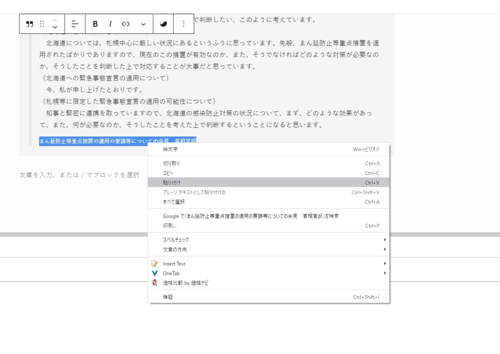 リライトが難しい場合や、権威性のある文章を引用(コピー)したい時は、以下の手順で行います。
