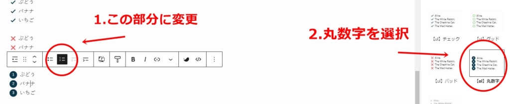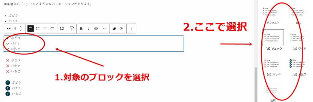ダメな例はエンターのみで改行しているので空白ができてしまい箇条書きできません。