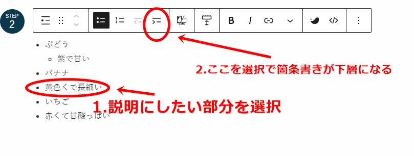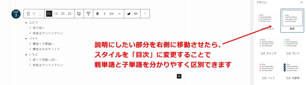 箇条書きの単語に説明を付けるパターン(親階層と子階層に分けるパターン)
