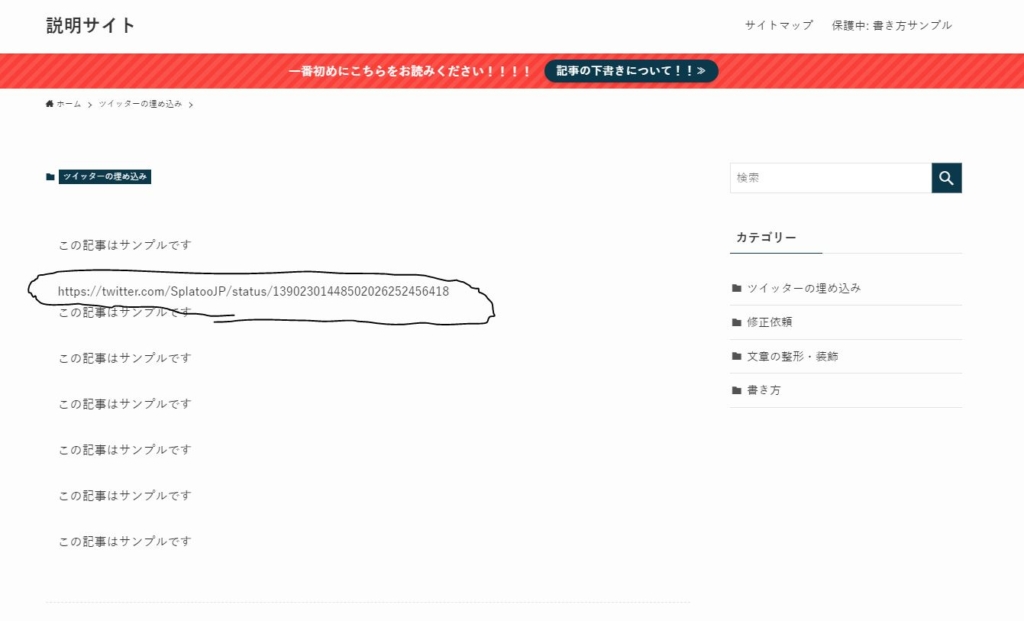 ツイッターの埋め込みがうまくいっていない時の症状は以下の通りです。